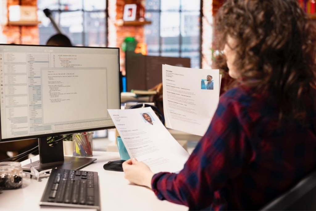 Hình ảnh minh hoạ: Nhà tuyển dụng đọc hồ sơ ứng viên thủ công